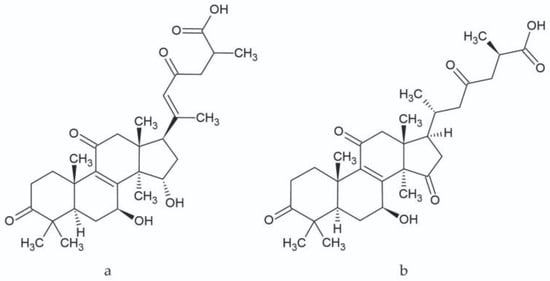 Chemical structure of ganoderic acid A (a) and ganoderic acid C (b).