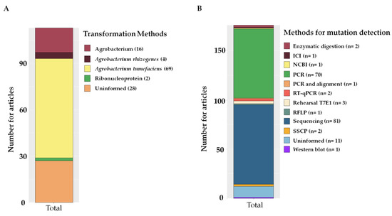 - Modrzejewski, D.; Hartung, F.; Sprink, T.; Krause, D.; Kohl, C.; Wilhelm, R. What is the available evidence for the range of applications of genome-editing as a new tool for plant trait modification and the potential occurrence of associated off-target effects: A systematic map. Environ. Evid. 2019, 8, 27. [Google Scholar] [CrossRef]