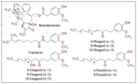 Numerous TRPV1 agonists with structures different from that of capsaicin and related derivatives were isolated from medicinal and edible plants (Figure 3).