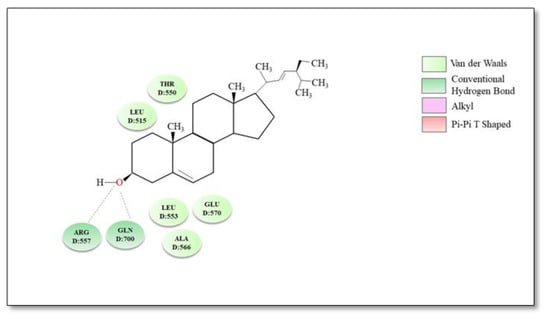Molecular docking—2D diagram of stigmasterol with TRPV1 receptor.