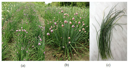 Appearance of A. schoenoprasum (a,b); edible parts (leaves) of A. schoenoprasum (c).