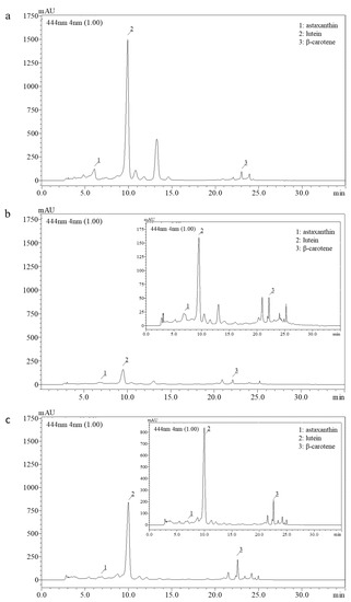 | Astaxanthin (mg/gextr) | 0.503 ± 0.020 | 0.430 ± 0.020 | 0.155 ± 0.022 |