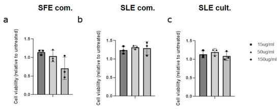 2.3. Effect of C. vulgaris Extracts Obtained by Different Extraction Methods on Cell Viability