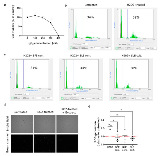 2.4. C. vulgaris Extracts Mediate the Inhibition of H2O2-Induced ROS Generation in MSCs