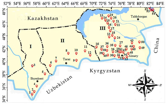 - Climate-Data.org. Available online: https://en.climate-data.org/asia/kazakhstan/jambyl-province-2238/ (accessed on 20 July 2022).