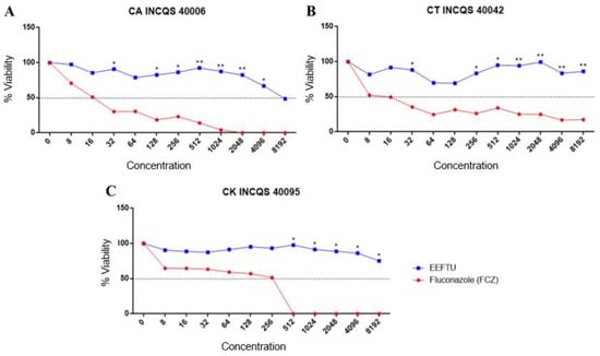 - Mendes, J.M. Investigação da Atividade Antifúngica do Óleo Essencial de Eugenia caryophyllata Thunb. Sobre Cepas de Candida tropicalis. Master’s Thesis, Universidade Federal da Paraíba, João Pessoa, Brazil, 2011; pp. 10–14. [Google Scholar]