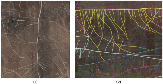 Image taken by CI-600 in situ root imager (a) and an image taken during the analysis process (b).