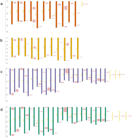 The distribution of the SOT gene on chromosomes of four cotton species.(a) G. arboreum. (b) G. raimondii. (c) G. hirsutum. (d) G. barbadense.