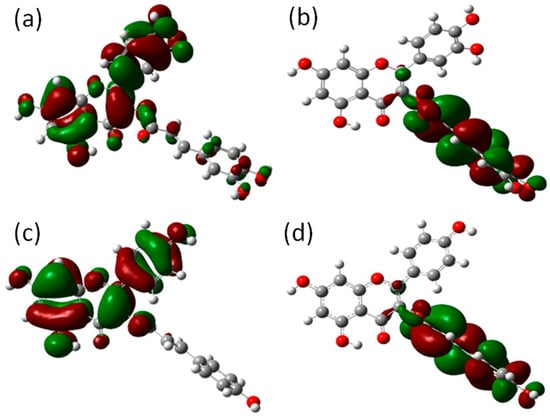 (a) Castilliferol HOMO (b)Castilliferol LUMO (c) Castillicetin HOMO and (d) Castillicetin LUMO.