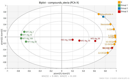2.5. Content of Diterpenoid Steviol Glycosides (Stevioside and Rebaudioside A) and Mono and Di Chlorogenic Acids