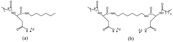 - Anchev, B.A.; Tsekova, D.S.; Mircheva, K.M.; Grozev, N.A. Monolayer formed by L-Asp-based gemini surfactants self-assembled in 1D nanostructures. RSC Adv. 2019, 9, 33071–33079. [Google Scholar] [CrossRef]