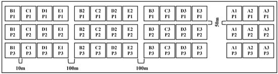 Three random 50 cm × 50 cm sample squares were set in each sample plot for vegetation survey, and to avoid the edge effect, the interval between adjacent sample squares was set at >10 m (Figure 2). Three replicates were spatially set for each successional stage, totaling nine replicates. All plants in the sample plots were identified, and the coverage of each species and the total coverage of the sample plots were visually estimated, and the height of each species was measured by straightedge and recorded.
