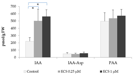 - Sugawara, S.; Mashiguchi, K.; Tanaka, K.; Hishiyama, S.; Sakai, T.; Hanada, K.; Kinoshita-Tsujimura, K.; Yu, H.; Dai, X.; Takebayashi, Y.; et al. Distinct Characteristics of Indole-3-Acetic Acid and Phenylacetic Acid, Two Common Auxins in Plants. Plant Cell Physiol. 2015, 56, 1641–1654. [Google Scholar] [CrossRef]