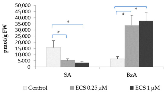 2.2.2. Effect of 24-Epicastasterone on Salicylic and Benzoic Acids Levels