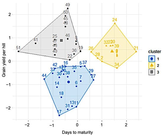 2.4. Trait–Genotype Interactions Using Cluster Analysis