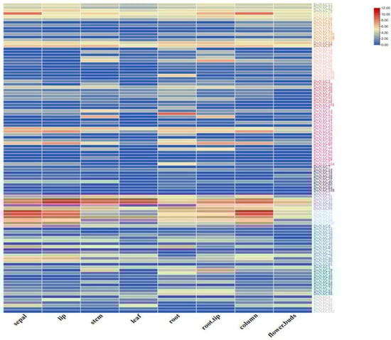 RNA-seq datasets of 8 tissues, including column, sepal, root, root tip, stem, leaf, lip and flower buds, were downloaded from the NCBI sequence read archive (SRA) database with the accession No. PRJNA348403, and the RNA-seq data under cold stress and control conditions were also downloaded from the SRA database with the accession No. PRJNA314400 (Table S4). After quality control, the clean reads were mapped onto the reference sequences of D. officinale using the Hisat2 tool [43], and the transcripts per million (TPM) were calculated by StringTie v2.1.2 [44]. The differential expressed gene was detected by the DESeq2 tool with the cut-off parameter: FDR < 0.05 and |log2foldchange| > 1. The heatmap of the expression patterns was drawn by R software version 4.1.0.