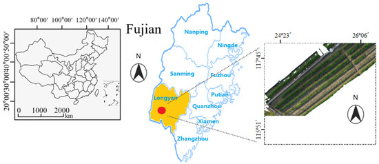 The Location of the Experimental Site and the Overview of the Rice RGB Images Captured by an Unmanned Aerial Vehicle (UAV) Remote Sensing Platform.