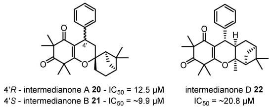 Intermedianones A, B and D 20–22 isolated from the flowers of C. intermedia and their anti-plasmodial activities against P. falciparum 3D7 [19].