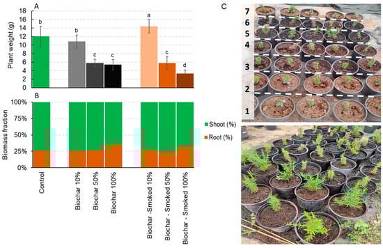 - Bonanomi, G.; Jesu, G.; Zotti, M.; Idbella, M.; D’Errico, G.; Laudonia, S.; Vinale, F.; Abd-ElGawad, A. Biochar-derived smoke-water exerts biological effects on nematodes, insects, and higher plants but not fungi. Sci. Total Environ. 2021, 750, 142307. [Google Scholar] [CrossRef]
