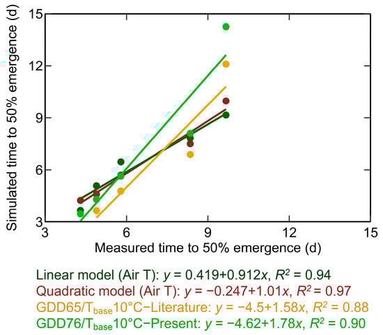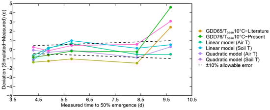 | [26] | 10 °C | 80 GDD for 75% emergence | No information | No information |