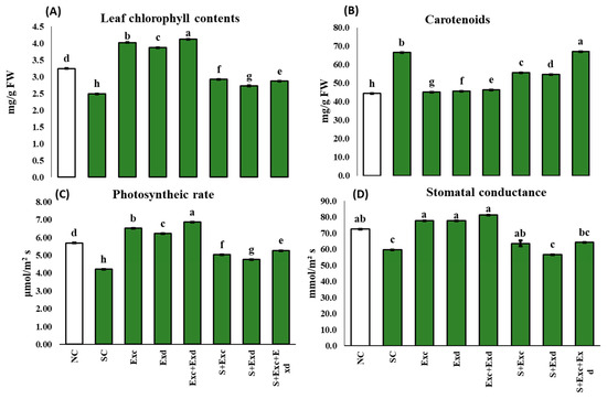 4.5. Measurement of Photosynthetic Pigments and Gas Exchange Parameters
