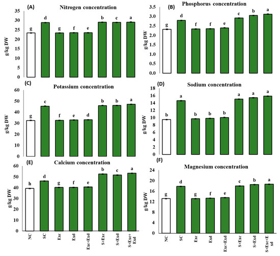 - Ahanger, M.A.; Qin, C.; Begum, N.; Maodong, Q.; Dong, X.X.; El-Esawi, M.; El-Sheikh, M.A.; Alatar, A.A.; Zhang, L. Nitrogen availability prevents oxidative effects of salinity on wheat growth and photosynthesis by up-regulating the antioxidants and osmolytes metabolism; and secondary metabolite accumulation. BMC Plant Biol. 2019, 19, 479. [Google Scholar] [CrossRef] [PubMed]