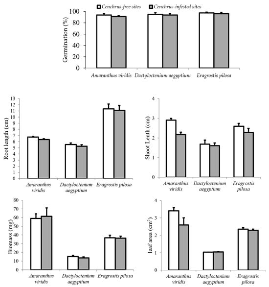 APA StyleHassan, M. O., Mohamed, H. Y., Okla, M. K., Kiani, B. H., & Amro, A. (2023). Dense Cover, but Not Allelopathic Potential, of Naturalized Alien Cenchrus echinatus L. Threatens the Native Species in Urban Vegetation. Plants, 12(21), 3736. https://doi.org/10.3390/plants12213736