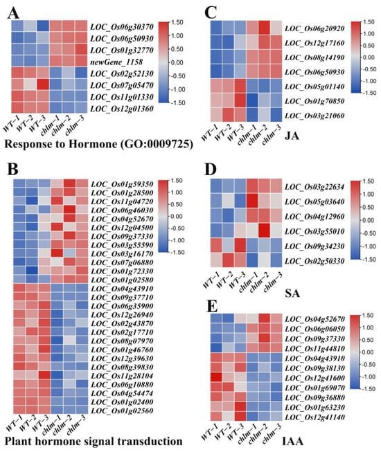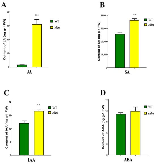 2.9. Genes Regulating Hormone Regulatory Pathways Were Identified in the Chlm Mutant