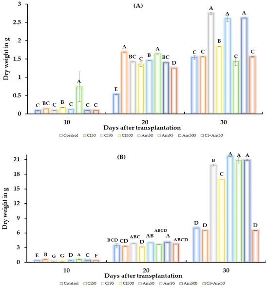 | Cl50 + Am50 | 8.3 ± 0.35 bc | 15.0 ± 0.24 b | 25.0 ± 1.41 ab |
