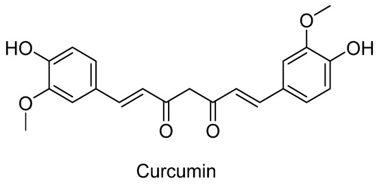 Curcuma longa L., a plant belonging to the Zingiberaceae family, is commonly known as turmeric and is a popular spice in Algerian cuisine [227]. The local knowledge of turmeric in Algeria is primarily linked to its traditional use in Ayurvedic herbal medicine [227]. Its vibrant yellow color and unique flavor make it a favorite in many dishes. Beyond its culinary uses, turmeric has a long history of medicinal applications, dating back thousands of years, especially in traditional Indian and Chinese medicines [228]. The main active compound in turmeric is curcumin (Figure 12), which has garnered significant attention for its potential health benefits, including anti-inflammatory, antioxidant, and even anticancer effects [228].
