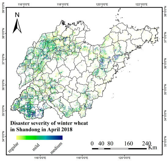 The extent and severity of winter wheat spring frost damage in April 2018 in Shandong Province.