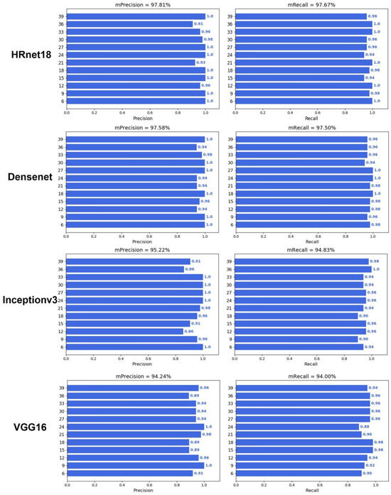 Performance of deep learning with HRnet18, Densenet121, Inception v3, and VGG16.