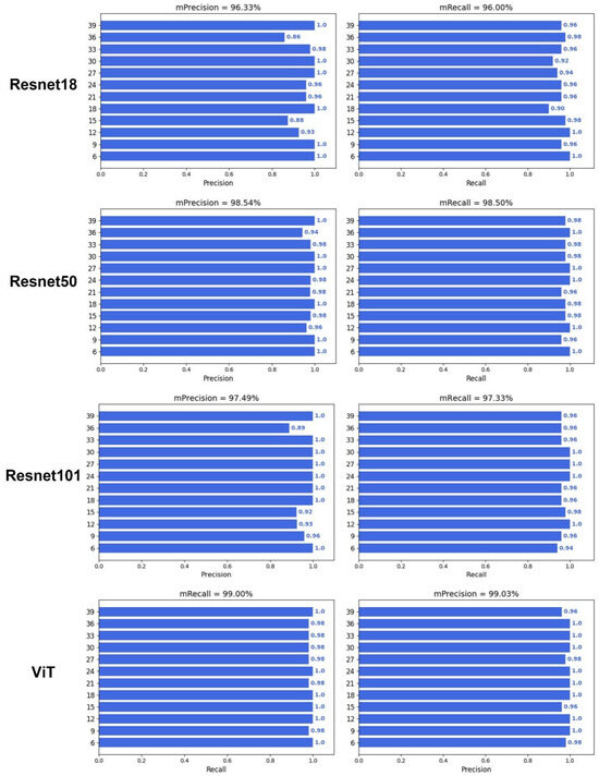 Performance of deep learning with Resnet18, Resnet50, Resnet101, and ViT.