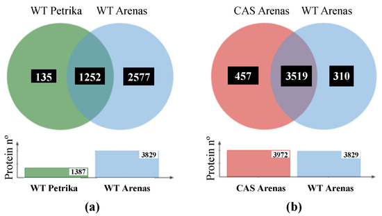 (a) Venn diagram showing the unique and intersection of the identified protein in the proteomic analysis of Petrika et al., 2012 and this work. (b) Venn diagram showing the unique and intersection of the identified proteins in wild-type and cas-c1 root hair samples.
