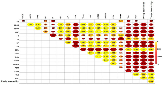 Finally, “precipitation seasonality” (PS, %), “temperature seasonality” (TS, °C), “annual temperature range” (TAR, °C), and “annual mean diurnal range” (MDR, °C) were climatic seasonality proxy variables. In previous research, these variables were also utilized to describe climate seasonality [44].