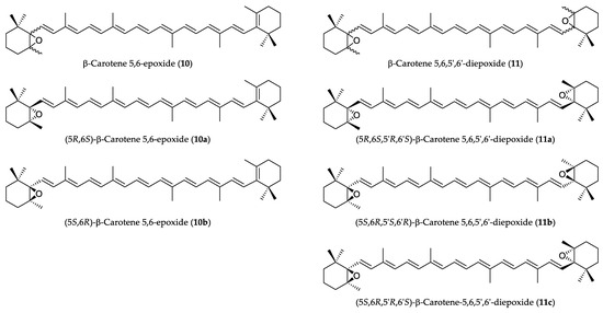 4.3. Preparation of β-Carotene 5,6-Epoxide (10) and β-Carotene 5,6,5′,6′-Diepoxide (11)