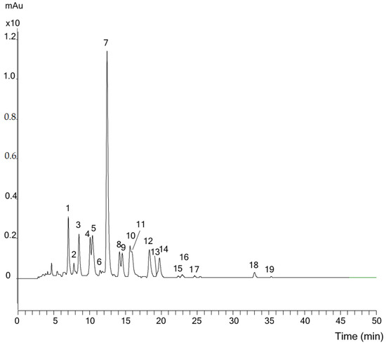 - Stojakowska, A.; Malarz, J.; Zylewski, M.; Kisiel, W. Acylated hydroxycinnamic acid glucosides from flowers of Telekia speciosa. Phytochem. Lett. 2015, 12, 257–261. [Google Scholar] [CrossRef]