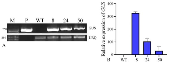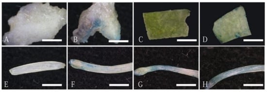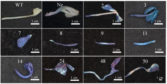 - Mudunkothge, J.S.; Krizek, B.A. The GUS reporter system in flower development studies. In Flower Development. Methods in Molecular Biology; Humana Press: New York, NY, USA, 2014; pp. 295–304. [Google Scholar]