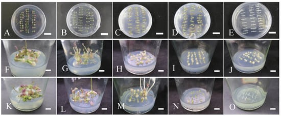 - Ogaki, M.; Furuichi, Y.; Kuroda, K.; Chin, D.; Ogawa, Y.; Mii, M. Importance of co-cultivation medium pH for successful Agrobacterium-mediated transformation of Lilium× formolongi. Plant Cell Rep. 2008, 27, 699–705. [Google Scholar] [CrossRef]