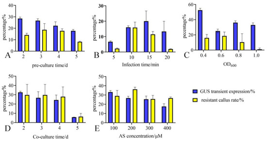 2.3. Optimizing Key Parameters by Combining Transient Expression Rate and Resistant Callus Rate