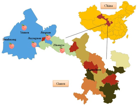Sampling diagram of local peach resources from the Hexi Corridor in Gansu province.