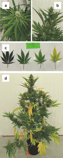 - Cockson, P.; Landis, H.; Smith, T.; Hicks, K.; Whipker, B. Characterization of nutrient disorders of Cannabis sativa. Appl. Sci 2019, 9, 4432. [Google Scholar] [CrossRef]