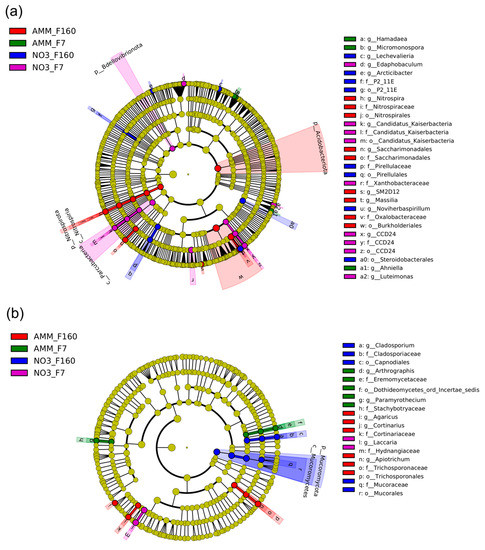 - Nilsson, R.H.; Larsson, K.-H.; Taylor, A.F.S.; Bengtsson-Palme, J.; Jeppesen, T.S.; Schigel, D.; Kennedy, P.; Picard, K.; Glöckner, F.O.; Tedersoo, L.; et al. The UNITE database for molecular identification of fungi: Handling dark taxa and parallel taxonomic classifications. Nucleic Acids Res. 2019, 47, D259–D264. [Google Scholar] [CrossRef] [PubMed]