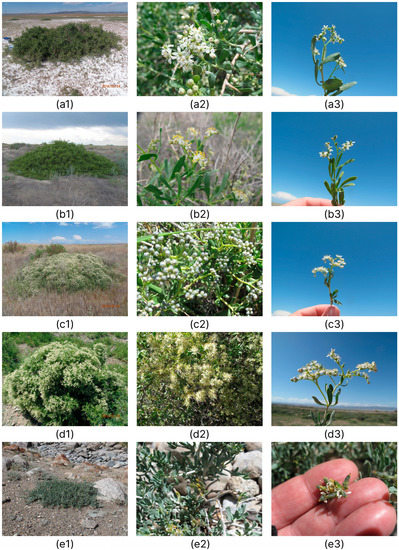 - Pavlov, N.V. Flora of Kazakhstan, 6th ed.; Publishing House of the Academy of Sciences of the Kazakh SSR: Alma-Ata, Kazakhstan, 1963; pp. 52–53. [Google Scholar]