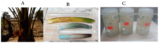 - Abahmane, L.; Bougerfaoui, M.; Anjarne, M. Use of tissue culture techniques for date palm propagation and rehabilitation of palm groves devastated by bayoud disease. In Proceedings of the International Symposium on Date Palm, Assiut University, Assiut, Egypt, 9–11 November 1999. [Google Scholar]