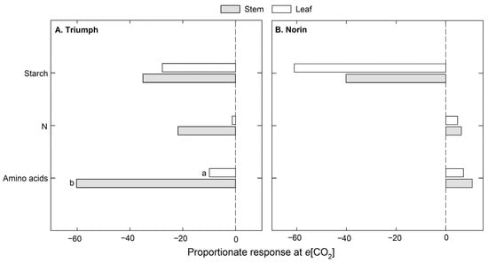 - Aranjuelo, I.; Erice, G.; Sanz-Sáez, A.; Abadie, C.; Gilard, F.; Gil-Quintana, E.; Avice, J.C.; Staudinger, C.; Wienkoop, S.; Araus, J.L.; et al. Differential CO2 effect on primary carbon metabolism of flag leaves in durum wheat (Triticum durum Desf.). Plant Cell Environ. 2015, 38, 2780–2794. [Google Scholar] [CrossRef]