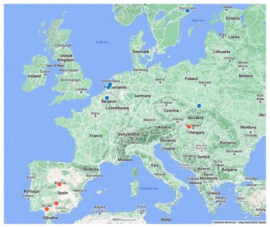 - Markovic, D.; Carrizo, S.; Freyhof, J.; Cid, N.; Lengyel, S.; Scholz, M.; Kasperdius, H.; Darwall, W. Europe’s freshwater biodiversity under climate change: Distribution shifts and conservation needs. Divers. Distrib. 2014, 20, 1097–1107. [Google Scholar] [CrossRef]
