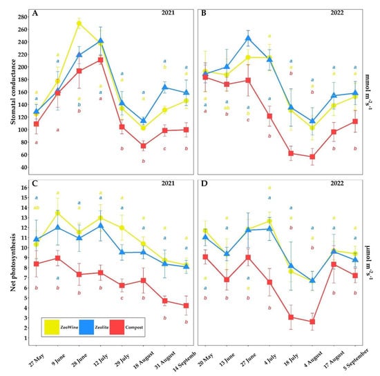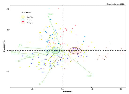Chicago/Turabian StyleCataldo, Eleonora, Maddalena Fucile, Davide Manzi, Cosimo Maria Masini, Serena Doni, and Giovan Battista Mattii. 2023. "Sustainable Soil Management: Effects of Clinoptilolite and Organic Compost Soil Application on Eco-Physiology, Quercitin, and Hydroxylated, Methoxylated Anthocyanins on Vitis vinifera" Plants 12, no. 4: 708. https://doi.org/10.3390/plants12040708