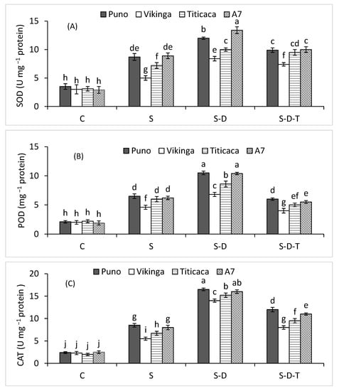 APA StyleAbbas, G., Areej, F., Asad, S. A., Saqib, M., Anwar-ul-Haq, M., Afzal, S., Murtaza, B., Amjad, M., Naeem, M. A., Akram, M., Akhtar, N., Aftab, M., & Siddique, K. H. M. (2023). Differential Effect of Heat Stress on Drought and Salt Tolerance Potential of Quinoa Genotypes: A Physiological and Biochemical Investigation. Plants, 12(4), 774. https://doi.org/10.3390/plants12040774