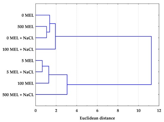 - Posmyk, M.; Bałabusta, M.; Wieczorek, M.; Śliwińska, E.; Janas, K.M. Melatonin applied to cucumber (Cucumis sativus L.) seeds improves germination during chilling stress. J. Pineal Res. 2009, 46, 214–223. [Google Scholar] [CrossRef] [PubMed]